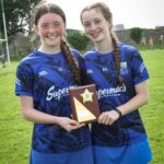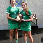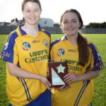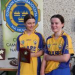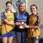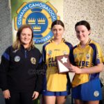 Munster Camogie Development Officer Ciara Cahill presenting trophy to the Clare captains at the Munster U14 Blitz in Rathkeale