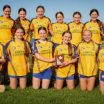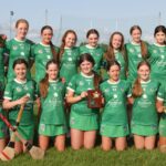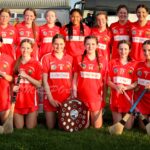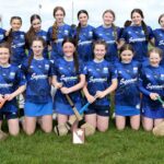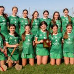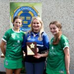 Munster Camogie Development Officer Ciara Cahill presenting trophy to the Cork captains at the Munster U14 Blitz in Rathkeale
