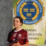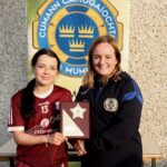 Munster Camogie Development Officer Ciara Cahill presenting trophy to the Galway captain at the Munster U14 Blitz in Rathkeale
