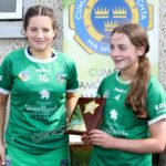 Chairperson Munster Camogie Christine Ryan presenting trophy to the Clare captains at the Munster U14 Blitz in Rathkeale