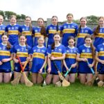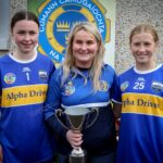 Christine Ryan chairperson of Munster Camogie presenting The Tipperary Blues who won the A competition with the cup