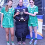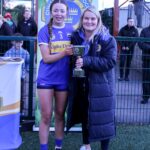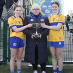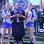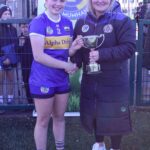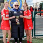 Marie Corbett Munster Treasurer presenting the Limerick Camogie captains with the cup in Fethard Town Park on Sunday 5th April